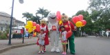 Nossos companheiros rotarianos estiveram bem próximos das pessoas distribuindo folhetos informativos sobre a Pólio e entregando balões para as crianças. A ação contou ainda com a presença do Zé Gotinha, e também do Vovô e da Vovó Chopão.