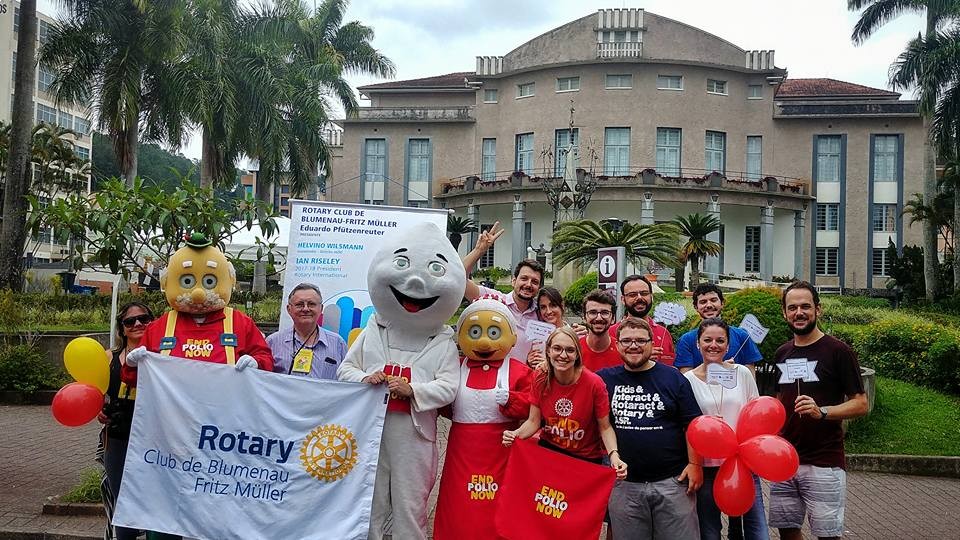 No dia 24/10 foi o dia Internacional de combate à Poliomielite. A erradicação da doença está muito próxima de acontecer, faltam apenas três países. Os integrantes do Rotary Club de Blumenau Fritz Müller não deixaram a data passar em branco e neste domingo (29/10) montaram uma estrutura em frente ao Teatro Carlos Gomes, bem no centro de Blumenau/SC.