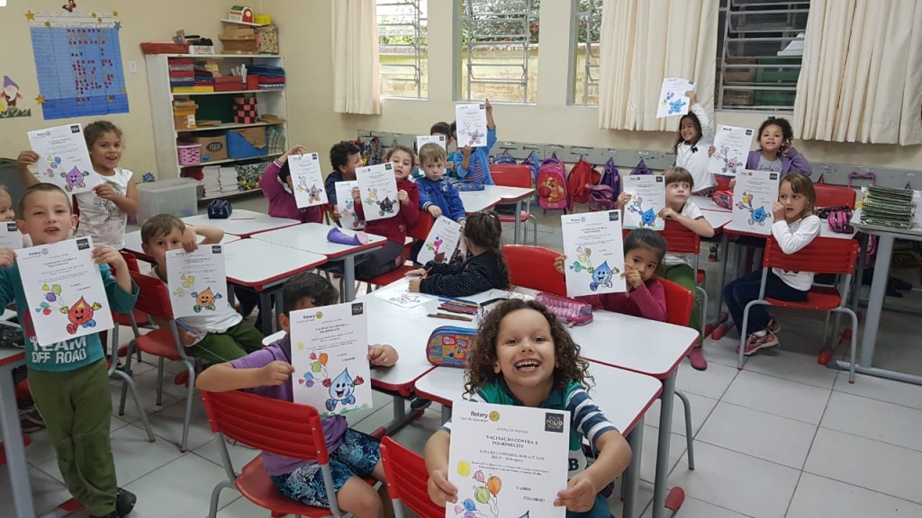 A criação do desenho e a distribuição nas escolas e creches é mais uma ação do Rotary Club de Schroeder para as atividades de divulgação da prevenção da Pólio.